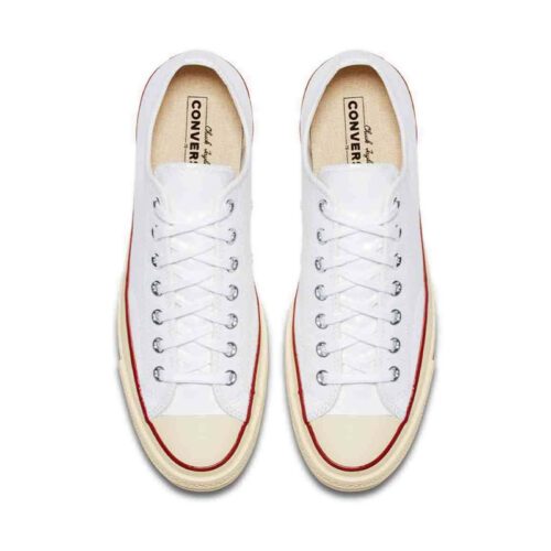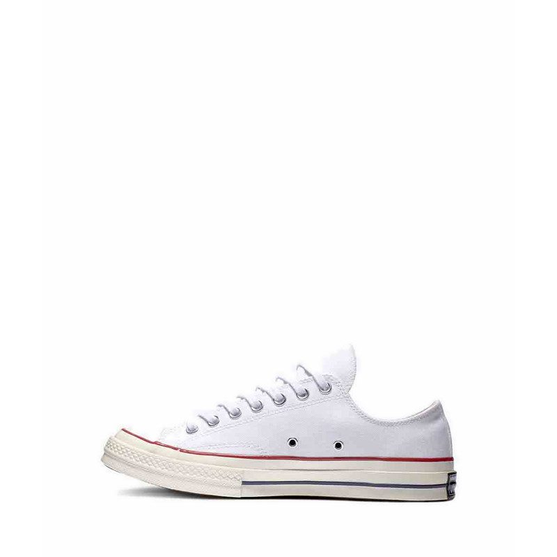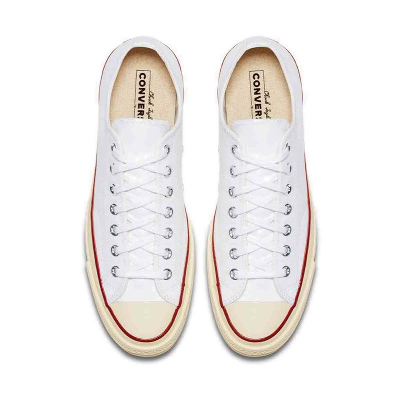 Giày cổ thấp Converse mang đến phong cách cổ điển với thân trên bằng vải canvas màu theo mùa, đế giữa trắng sáng bóng lấy cảm hứng từ kho lưu trữ, cùng đệm OrthoLite êm ái. Đường khâu lưỡi có cánh giúp cố định giày, bản vá cổ điển làm điểm nhấn đặc trưng.