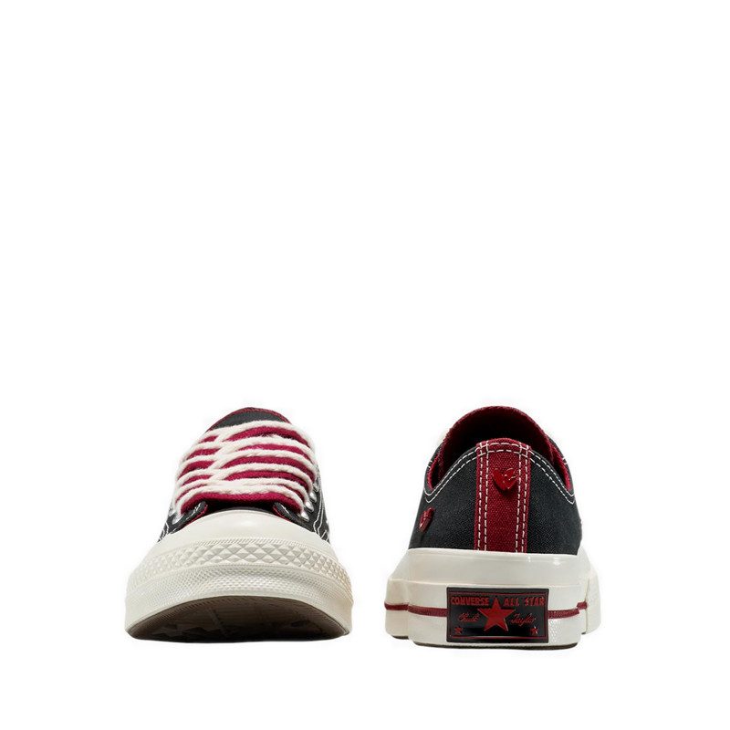 Thể hiện tình yêu và phong cách lãng mạn với Converse Chuck 70 Women’s. Đôi giày đế thấp cao cấp này kết hợp thiết kế cổ điển với những điểm nhấn đỏ, đinh tán hình trái tim và họa tiết lót giày lấy cảm hứng từ tình yêu. Đệm OrthoLite mang lại sự êm ái tối ưu, trong khi dây giày trắng cổ điển kèm dây đỏ phụ cho phép thay đổi kiểu dáng. Lưu ý sản phẩm unisex theo size nam, vui lòng tham khảo bảng size dưới đây.